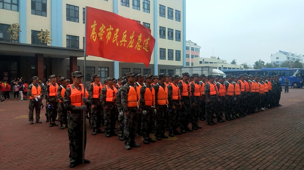 8月12日晚,接到高密市人武部通知后,孚日民兵迅速?gòu)乃拿姘朔郊Y(jié)。受臺(tái)風(fēng)警報(bào)影響,他們中的許多人都已經(jīng)在公司值了三天兩夜的班,還沒(méi)有來(lái)得及回家吃頓安穩(wěn)飯。
